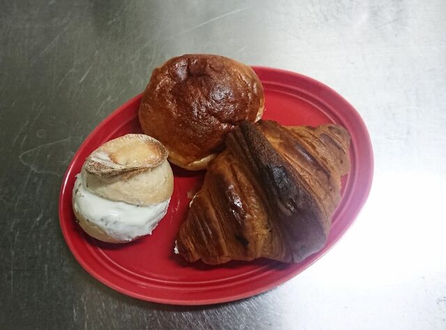 美味しそうなパンが沢山並んでいて迷ったが、前回と同じクロワッサン、クリームチーズパン