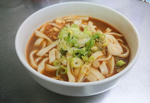 先日のカレーの残りを冷凍して、鍋はだに残ったカレーでカレーうどんを作る