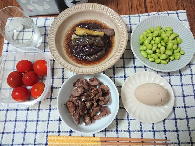 最近お気に入りのなすの煮物と下ごしらえして冷凍していた砂ずりを調理