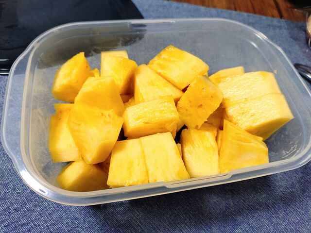 でっかいパイナップルがお安くなっていたので重いけど買って帰る